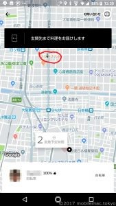 配達先ですが、指定した住所に配達してくれます。スマートフォンでGPSやWiFiである程度所在地を特定してくれますが、修正も可能です。なので、ホテルや職場でも大丈夫です。今回はレンタルスペースで仕事しているので、そちらの住所を指定します。なおメモを残す事があり、分かりやすい目標物や特徴を書いておくとスムーズに配達してくれます。またマンションなどの建物であれば、マンション名と部屋番号が入っていると配達がスムーズになります。今回はレンタルスペース建物の1階入り口まで、と入力しました。